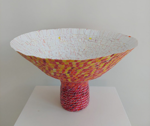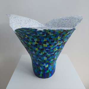 2018Naast de steeds ruimtelijker wordende collages ben ik gaan experimenteren met ruimtelijke objecten. Patuba komt aan zijn naam doordat mijn broer moest denken aan de tuba van onze vader die kortstondig in de plaatselijke harmonie heeft gespeeld.